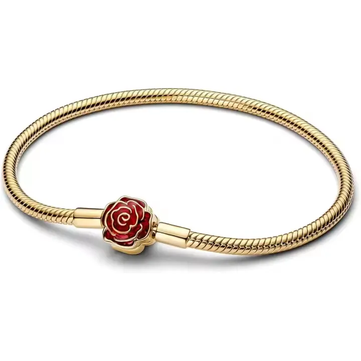 Moments 564019c01 Pulsera Mágica de La Bella y la Bestia en Color Rosa con Aleación de Metal Chapada en Oro de 14k, Compatible con Moments