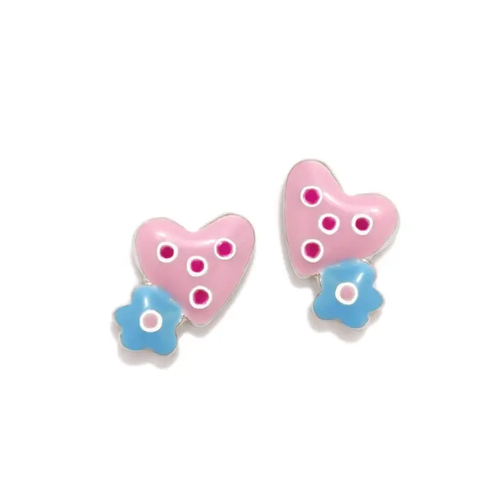 Agatha Ruiz de la Prada Pendientes 925m Plata Ley LOVE niña 9 mm. corazón esmaltado rosa flor