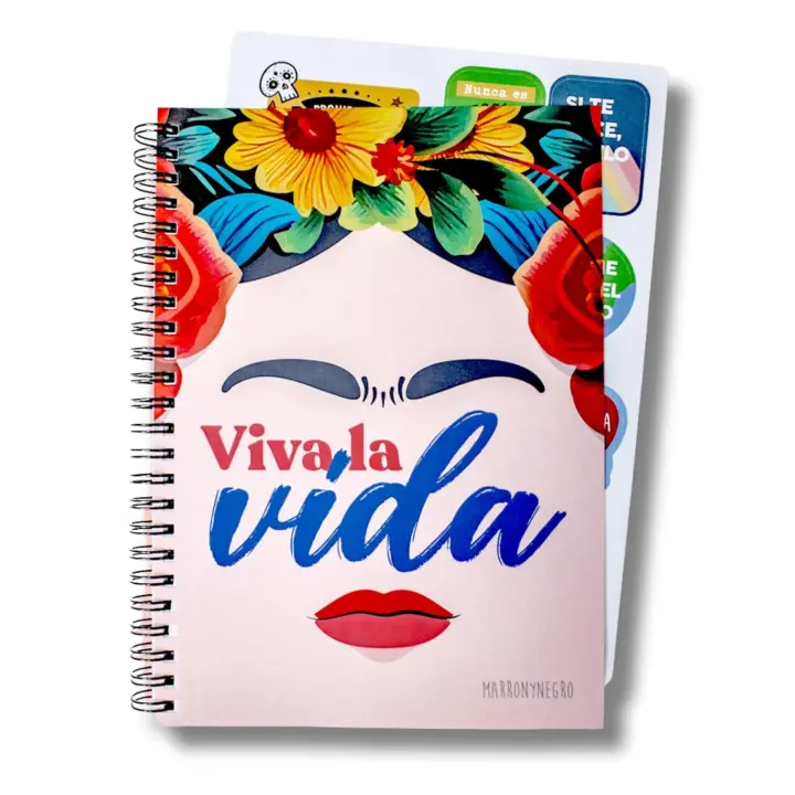 MARRON Y NEGRO - Cuaderno A5 Viva la Vida con Stickers - Inspirado en Frida Kahlo - 80 Hojas en Blanco - Tapa Blanda - Pegatinas Exclusivas - Ideal para Profesores, Estudiantes y Artistas