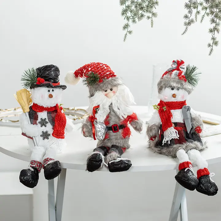 Set de 3 peluches navideños: muñeco de nieve, reno, Papá Noel sentado, piernas largas, adornos navideños súper lindos para el árbol de Navidad[D]