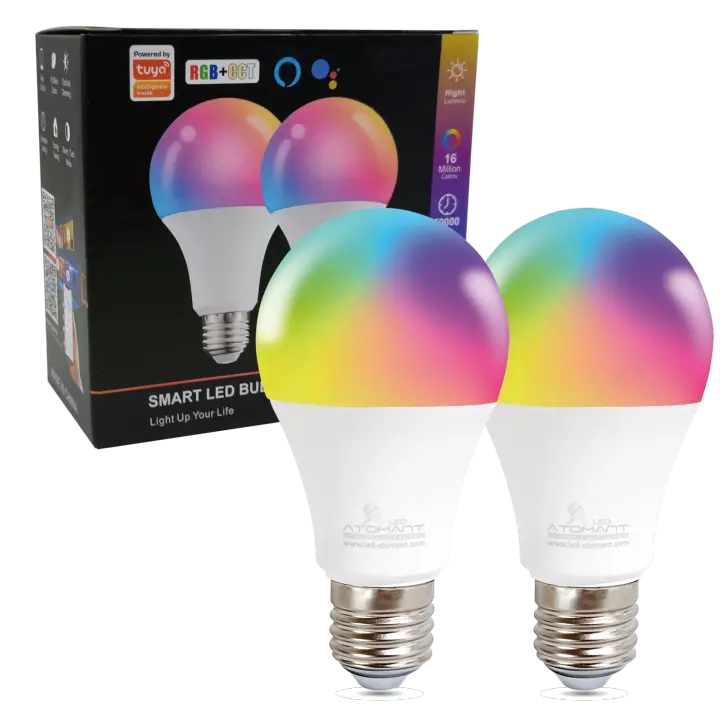 LED ATOMANT Bombilla LED Inteligente WiFi E27 8W RGB+CCT (Blanco Cálido, Neutro y Frío), Regulable, Equivalente a 90W Tradicional, Control por App, Compatible con Alexa, Google Home, Smart Life, Iluminación Domótica