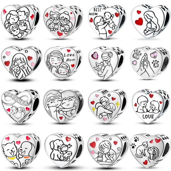 Abalorios de Encanto de Familia Caliente de Plata Esterlina 925 Joyería de Regalo de Día de la Madre DIY Fina
