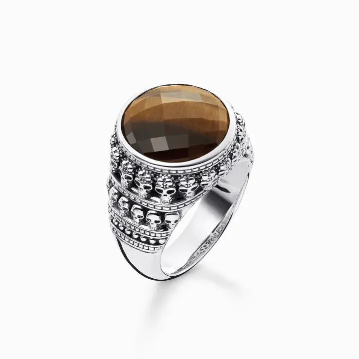 Thomas Sabo Anillo Unisex Calavera Ojo de Tigre Plata de Ley 925 TR2005-826-2-58