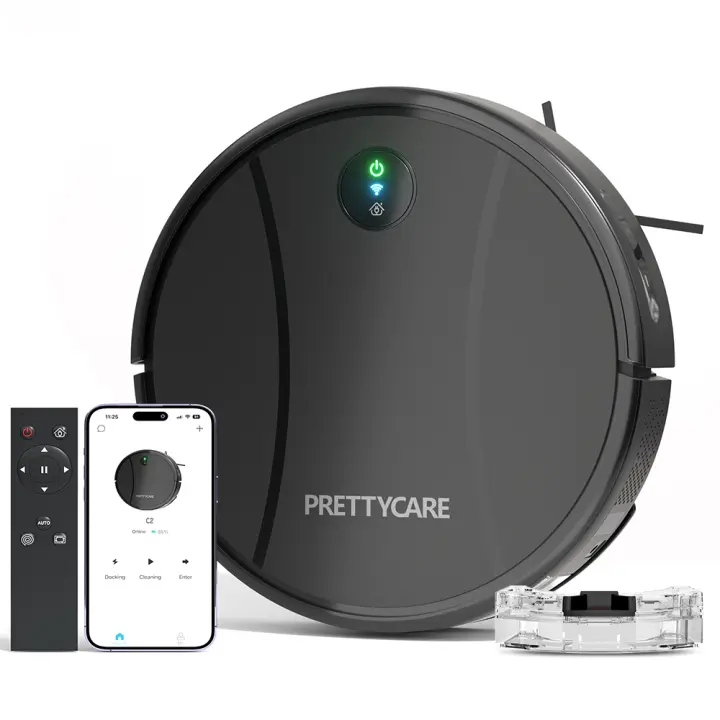 PrettyCare-Robot Aspirador C2, Fregona, Aspira y Barre al mismo tiempo, 4000Pa, Autonomía de 150 Minutos, aplicación/remoto/control