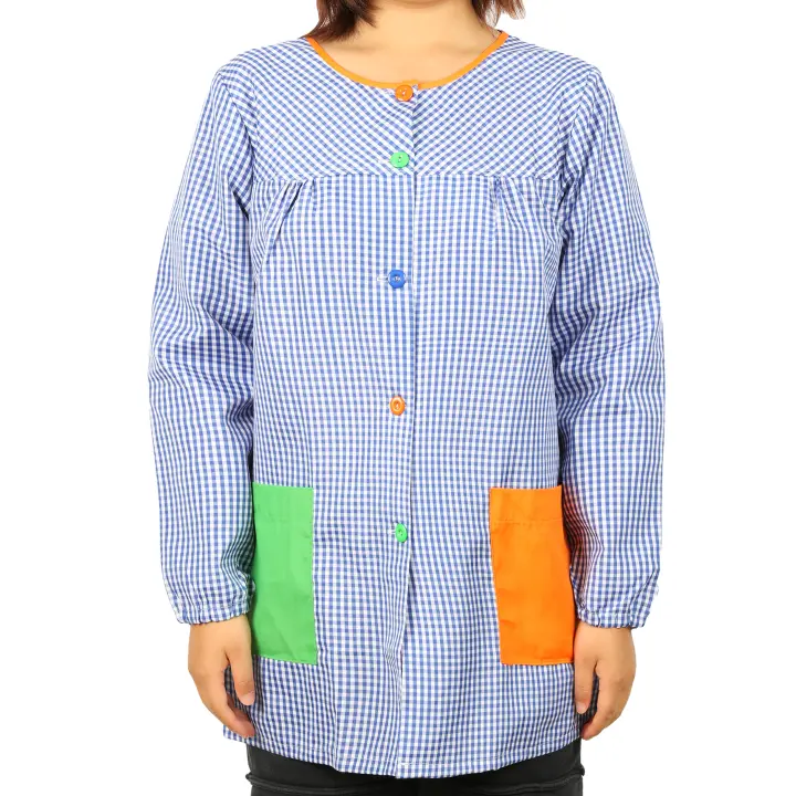 DEKORA SOUL - Bata Profesora Babi Profesora Bata Escolar Adulto de Cuadros Unisex Manga Larga