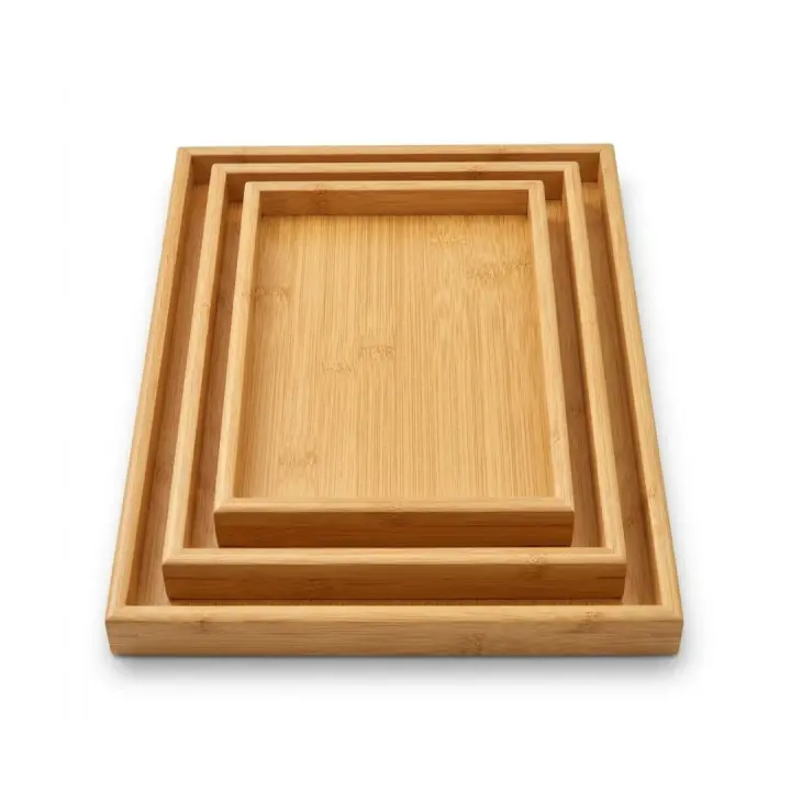X-Set de 3 Bandejas Rectangulares de Bambú, Bandejas de Servir para Cocina y Mesa, Bandeja para Desayuno, Café y Aperitivos, Bandejas Decorativas y Resistentes para Hogar, Restaurante y Hostelería