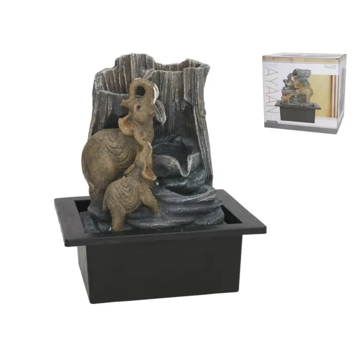 Gissed - Fuente Decorativa con Elefantes y Cascada, Diseño Relajante y Natural, Ideal para Decoración de Hogar, Oficina o Jardín, Estilo Zen con Circulación de Agua, Fabricada en Resina de Alta Calidad, Perfecta para Crear Ambientes Tranquilos y Elegantes