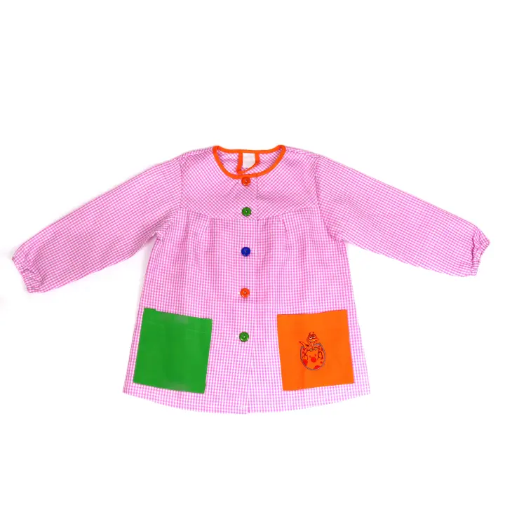 Various Bata Escolar Infantil Nombre Personalizado Babi Escolar para Guardería y Colegio Cuadrado con Botones Multicolor