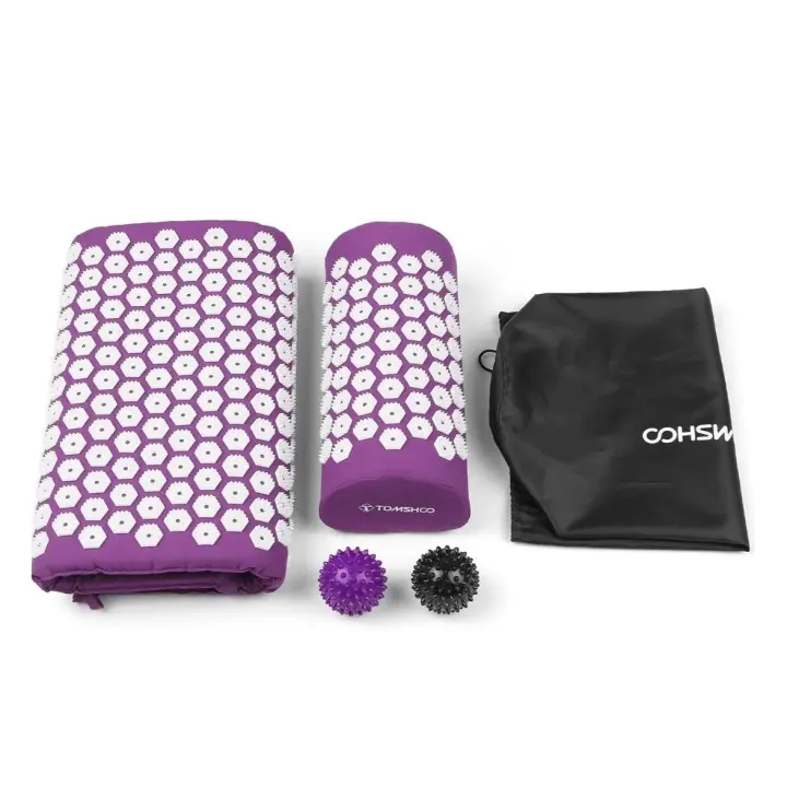 TOMSHOO Juego de acupresión, alfombrilla de acupresión y almohada con 2 bolas de masaje, terapia de alivio del dolor, cuello muscular, espalda, cuello con bolsa de viaje para hombres y mujeres