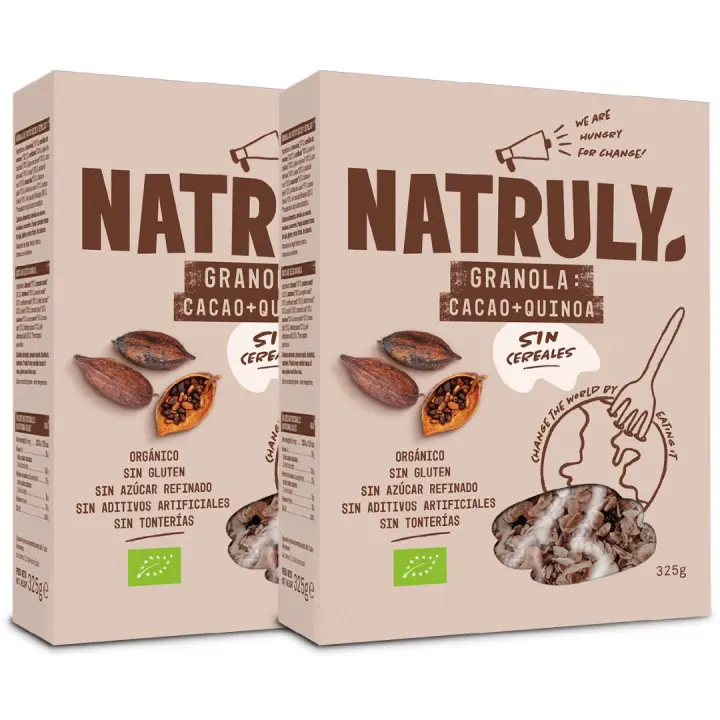 Natruly - Pack 2x, Granola de Cacao y Quinoa, BIO, 325g