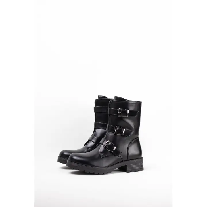 botin tacon mujer 19628 Botín Motero de Piel con Hebillas Haz una declaración de estilo con estos botines de mujer de inspiración motera. Fabricados en piel lisa de alta calidad en color negro, estos botines son robustos, duraderos y absolutamente impresc