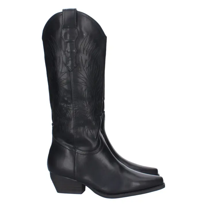 PuntoSalao Botas cowboy de tacón negras con grabado en caña cómoda mujer
