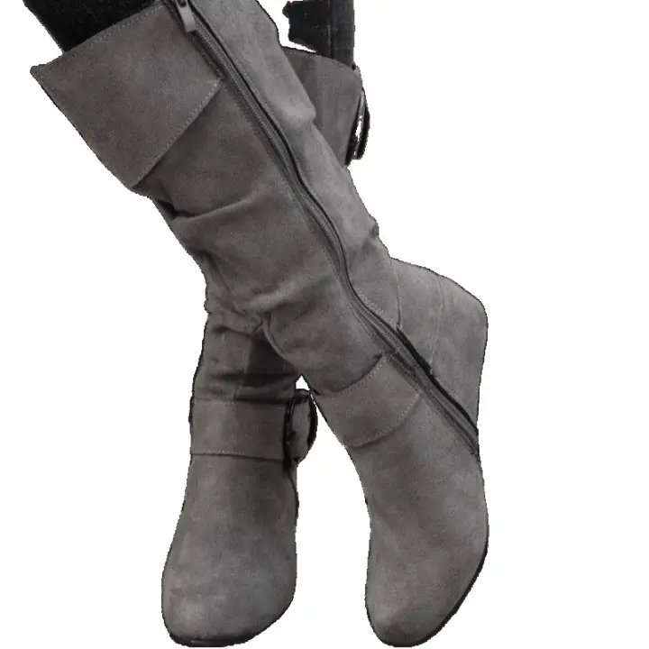 PuntoSalao Botas Altas de Mujer con Suela Track, Tacón Ancho y Cremallera Interior, Estilo Elegante para Otoño Invierno