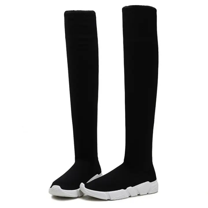 Botas Altas De Talle Para Mujer Otoño Invierno Transpirables De Punto Grueso Talla Grande 43 Punta Redonda Cierre De Cordones