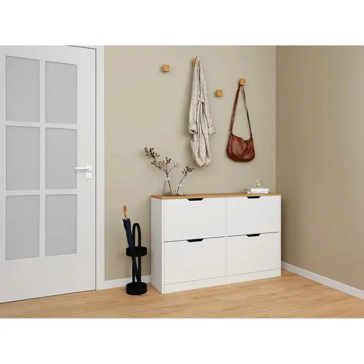 Vente-unique - shoe cabinet with 4 doors and 1 drawer - white and natural - coviana