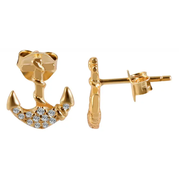 Pendientes Âncora em Prata de Lei 925 com Zircônias e Banhados a Ródio