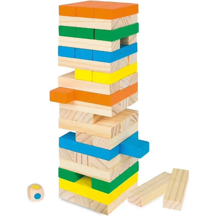 Woomax Torre Bloques de Madera Juego de Mesa 58 Piezas Desarrollo de Habilidades