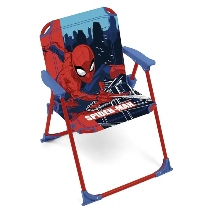 Silla plegable infantil con dibujo MINNIE FROZEN SPIDER-MAN PAW PATRO BOY y reposabrazos con medidas de 32x38x53cm apto para uso de exteriores o playa
