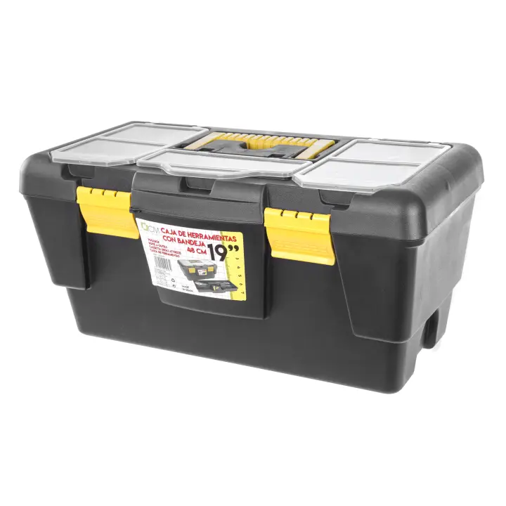 Caja de Herramientas Grande 48 cm 19" Plástico con Bandeja Interior y 5 Compartimentos Organizadores en la Tapa. Maletín de Plástico 19" Resistente y Práctico para Taller, Hogar o Profesional