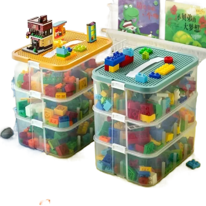 Caja de almacenamiento de escritorio, Caja de almacenamiento de bloques de construcción, compartimento para piezas, Caja de almacenamiento de juegos de gran capacidad