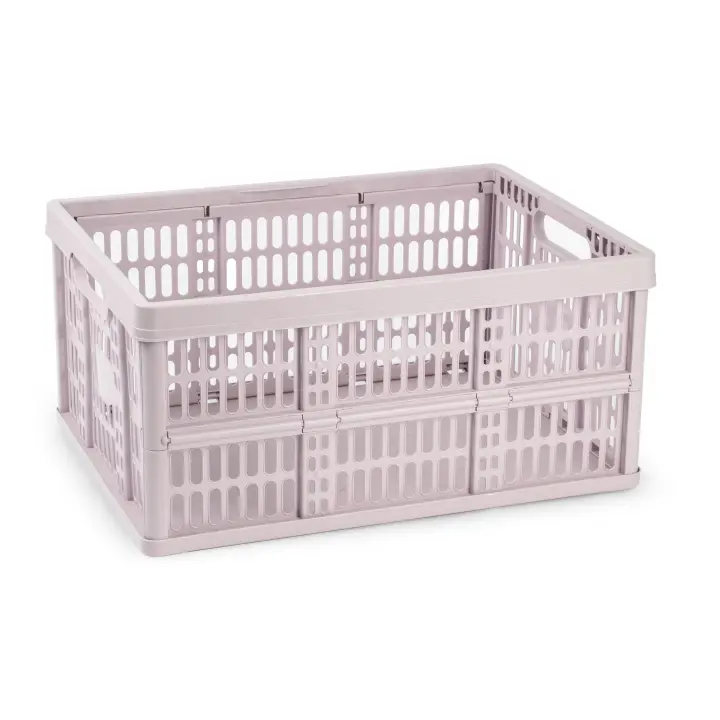 CABLEPELADO Caja Plegable con Asas, Caja Plástico Organizador, 48 cm Largo x 35 cm Ancho x 23 cm Alto, Capacidad 32 litros, Carga Máxima de 18 Kg, Rosa Claro