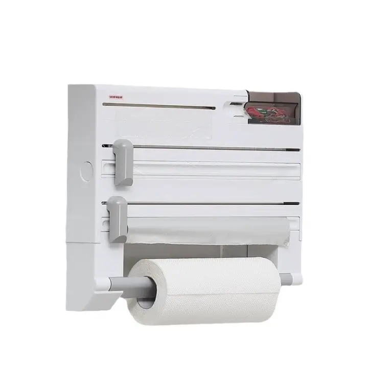 BIT Portarrollos de Cocina 4 en 1 de Pared, Portarrollos de Papel de Cocina Colgante, Dispensador de Papel Transparente y Impermeable, Portarrollos de Papel de Pared Parat, Film y Aluminio (Gris)