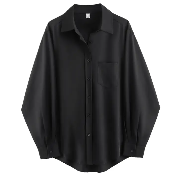 Zadily Camisa Minimalista Para Mujer De Manga Larga Color Negro Talla Grande Estilo Básico Botones Abiertos Top Largo Otoño
