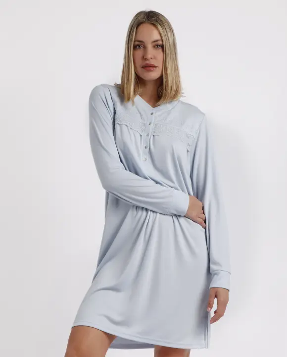 Camisón de Mujer Massana Manga Larga Algodón Estampado (Celeste)