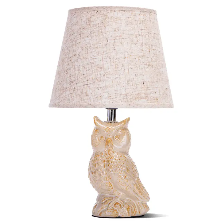 Aigostar Lámpara de Cerámica, Lámpara de Mesa E14, LED Luz Mesita de Noche, Pantalla de Tela, Lámpara Escritorio Diseño Clasico Vintage para Dormitorio, Estudio, Salon etc