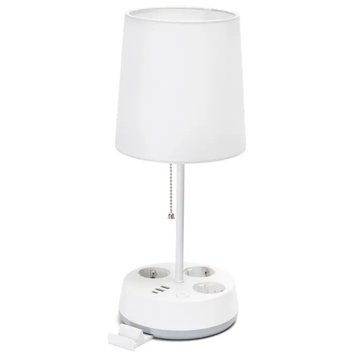 Aigostar Lámpara de Mesa E27 con Enchufe y Toma de Corriente, Salida USB y Tipo C, Lámpara de Mesita de Noche con Pantalla de Tela, Lámpara de Noche para Dormitorio Salón Oficina (Blanca)