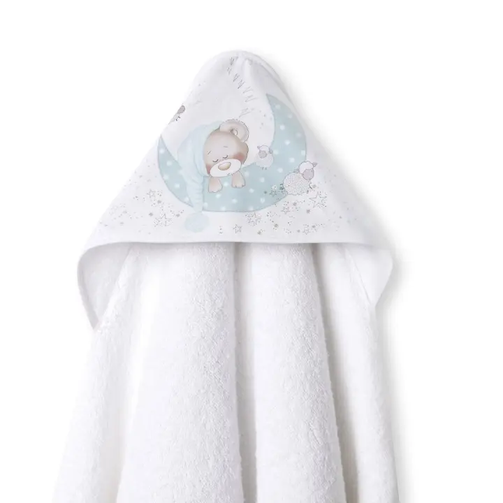 Interbaby capa de baño de 1metro x 1metro con capucha y babero azul/ verde BEAR SLEEPING