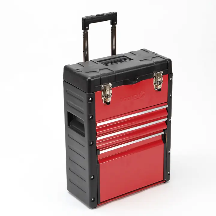 DOGHER 051-008 TROLLEY INTEGRAL 410X265X550MM 2C+1ARCON , trolley metálica compacta, incluye 2 cajones y 1 arcón abatile de gran capacidad con asa trasera telescópica desmontable, incluye doble cierre de seguridad metálico