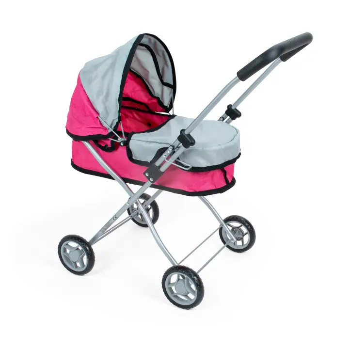 Carro de muñeca. Carrito moderno de muñecas en color rosa con gris (FL9136) REGALO PORTABEBÉ para muñecas. El carrito incluye capazo con capota y cubre capazo. Fácil de montar, Calidad al mejor precio. De acuerdo a la normativa CE. +3 años