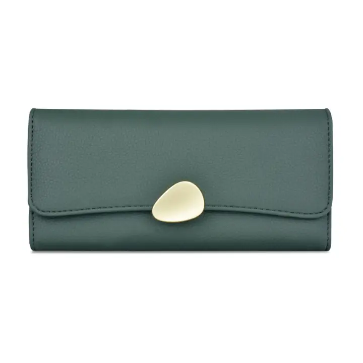 Cartera de cuero simple para mujer, billetera larga de cuero negro, verde y rojo, tarjetero para niñas