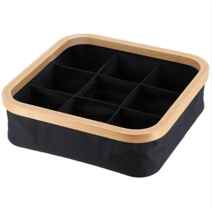 Bloom Store-Caja De Almacenamiento De Ropa Interior Organizador Joyas Sintió Organizador De Compartimentos para El Hogar Cesta De Almacenamiento Compartimiento Bambú Caja De Almacenaje,Cesta cuadrada plegable poliéster bambú flejado