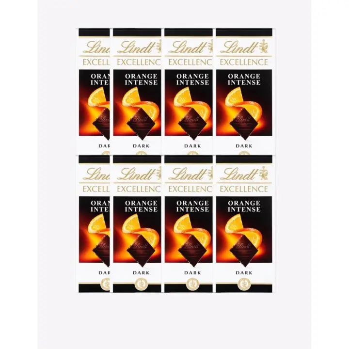 Lindt EXCELLENCE chocolate negro con naranja y almendras laminadas - Pack de 8 tabletas