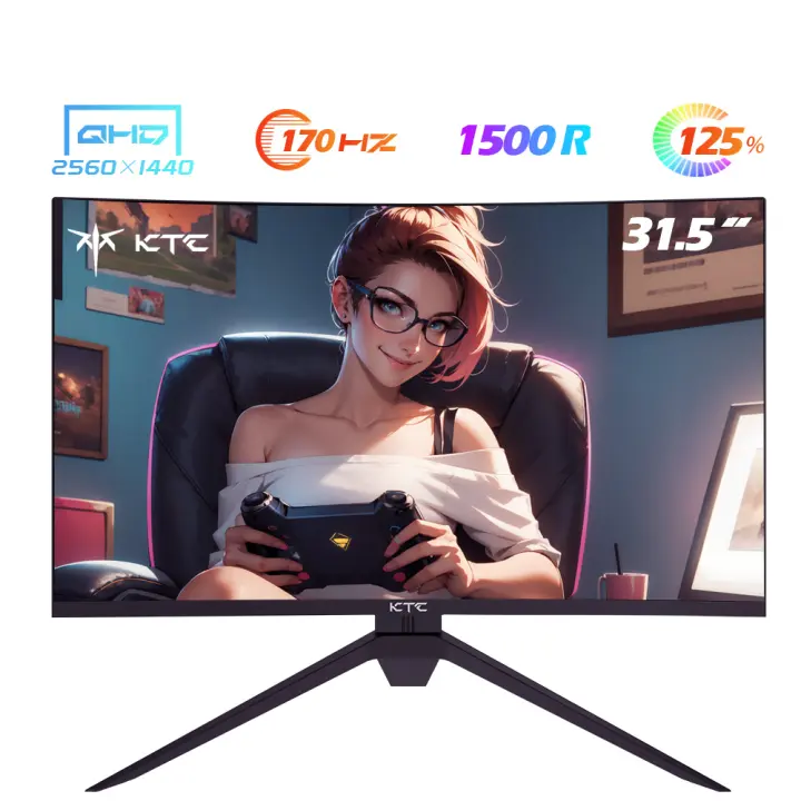 Monitor Curvo para Juegos KTC 32 Pulgadas 170Hz 2K QHD H32S17 (2560x1440_1ms_ NTSC 85%_ Panel HVA 1500R Sin Marco_HDMI2.0_ DP1.4_ USB_Audio_ 16:9_ Sin Parpadeo_ Luz Azul Baja_ 300cd/m²_ 3500:1_ sRGB 99%) FreeSync & G-Sync