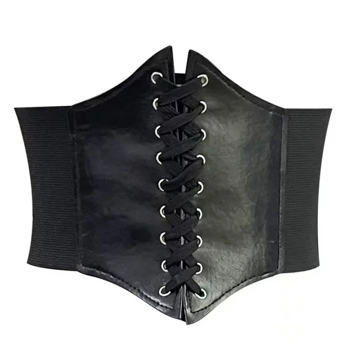 Espartilho feminino punk preto cinto largo de couro emagrecimento cintos de cuerpo para mujeres fajas elástico cinto de ci