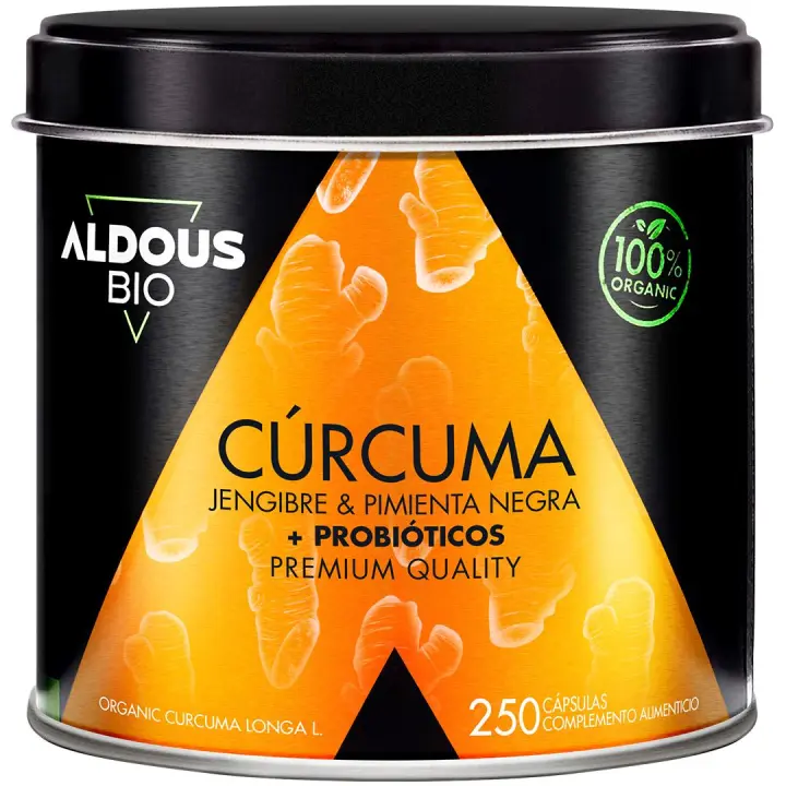 Cúrcuma Ecológica con Jengibre, Pimienta Negra y Probióticos 250 Cápsulas Aldous Bio