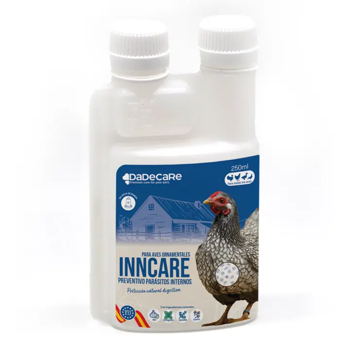 DADECARE Desparasitante Preventivo Interno Natural 250 ml – Para Gallinas, Aves de Corral y Exóticas – Ayuda a Prevenir y Tratar Trastornos Digestivos – Composición Natural – Con Extractos de Ajo y Orégano – Inncare