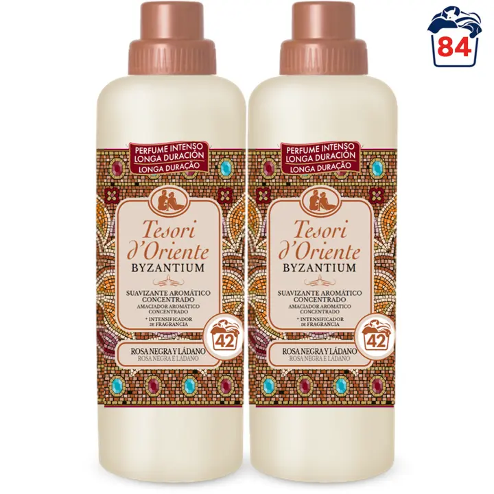 Tesori d'Oriente, Perfumador y Suavizante de Ropa Líquido Aromático Concentrado Byzantium, Aroma Intenso de Rosa Negra y Ládano, Microcápsulas para Fragancia Duradera, Facilita el Planchado, 760ml - 42 Lavados por Botella