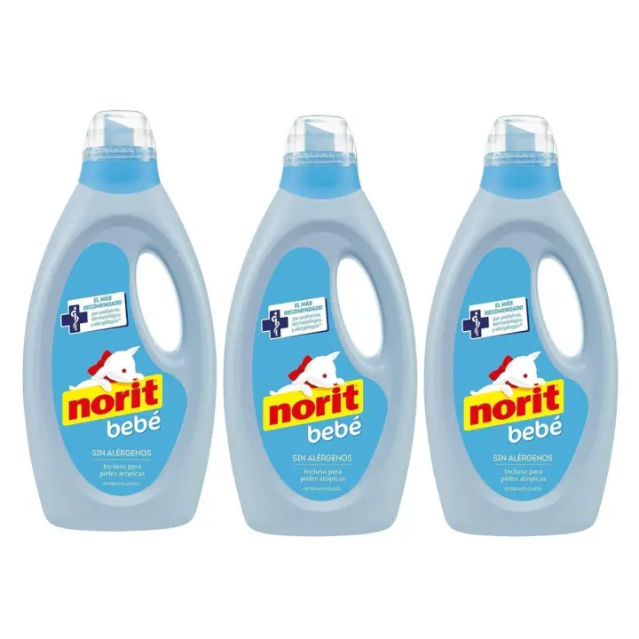 Norit Bebé 1.125ml 32 Lavados (Pack 3 uds) - Detergente Líquido, Neutro e Hipoalergénico, Especial para la ropa del bebé incluso con pieles atópicas, Uso a Mano o a Máquina, Agradable perfume sin necesidad de suavizante