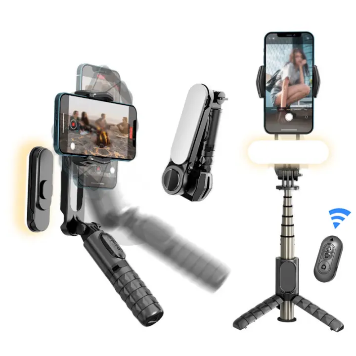 STTKGZD Gimbal Portátil Estabilizador De Vídeo Selfie Stick Con Luz De Iluminación Fill Y Trípode Bluetooth Para Smartphone Acción Kameralar