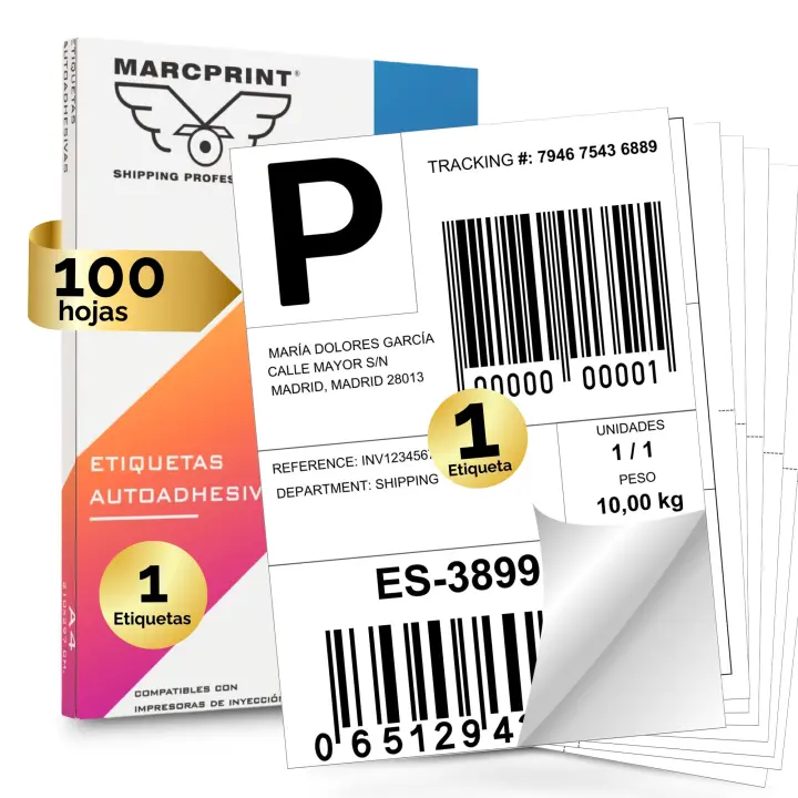MARCPRINT - Etiqueta Adhesiva de Folio A4 - 100 Hojas - Pegatina Folio - Etiquetas Autoadhesivas - Impresoras de Láser y Tinta