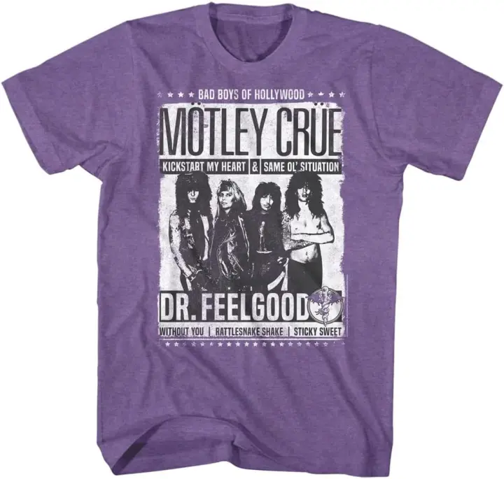 Camiseta de manga corta para hombre Motley Crue Dr. Feelgood Poster Purple Heather, camisetas gráficas de estilo vintage con música