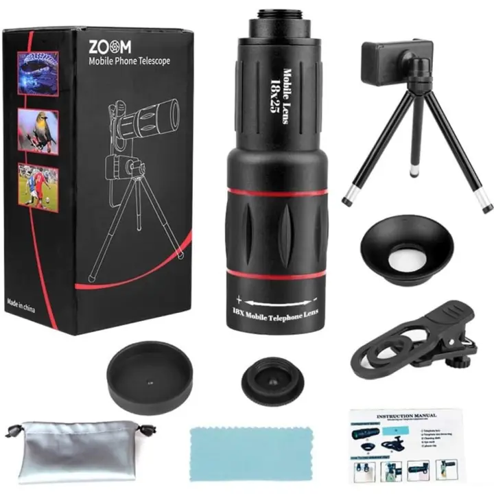 BIT Teleobjetivo para smartphone de 18 aumentos con trípode extensible