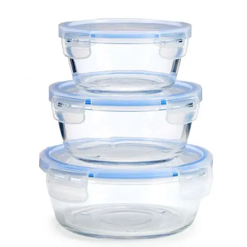 MAXHOME-Set 3 Fiambreras Redondo Cristal Hermético 100% Conservar Alimentos Usa En Hogar Aire Libre Oficina y De Forma Segura y Saludable 400/620/950 Ml