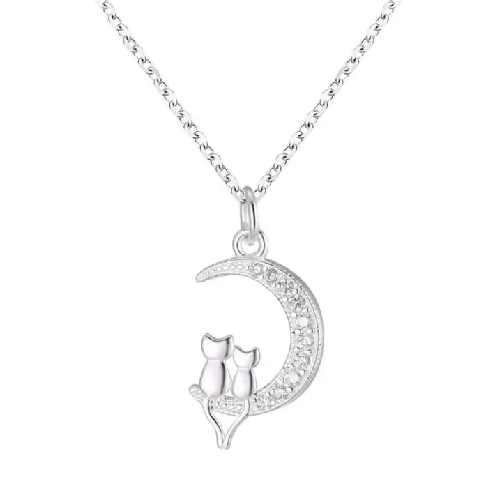Collar de Plata Pura S999 de JYJIAYUJY Cadena de Cuello de Alta Calidad con Colgante de Gato Lunar