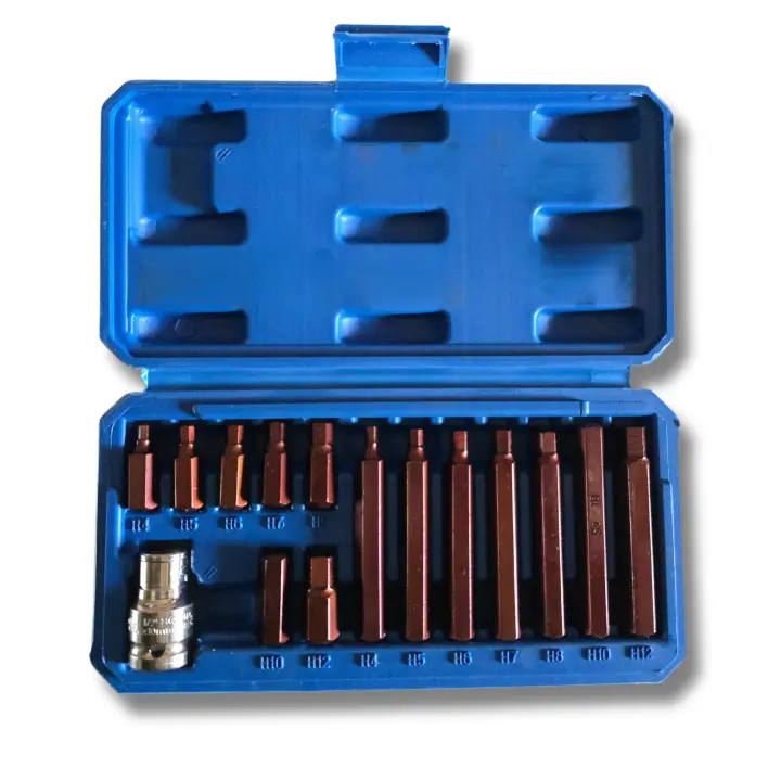 Juego de 15 Puntas ALLEN H4-H12 con Adaptador 1/2", Puntas Cortas 30mm y Largas 75mm + Maletín, MEDIDAS H4, H5, H6, H7, H8, H10, H12.