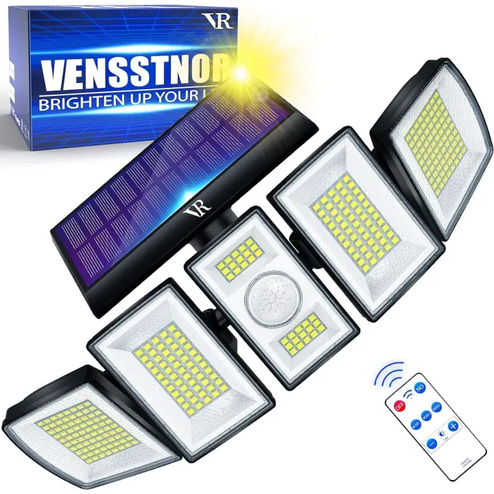 Tienda BIT Luces Solares impermeables al Aire Libre-300 LED 7000K 3000LM 5 niveles de Brillo ajustable 3 Modos de iluminación 2400mAh 340% más brilliant 360 ° 5 Cabezas IP65 Sensor de Movimiento 40ft VENSSTNOR Solar Motion Lights at aire Libre